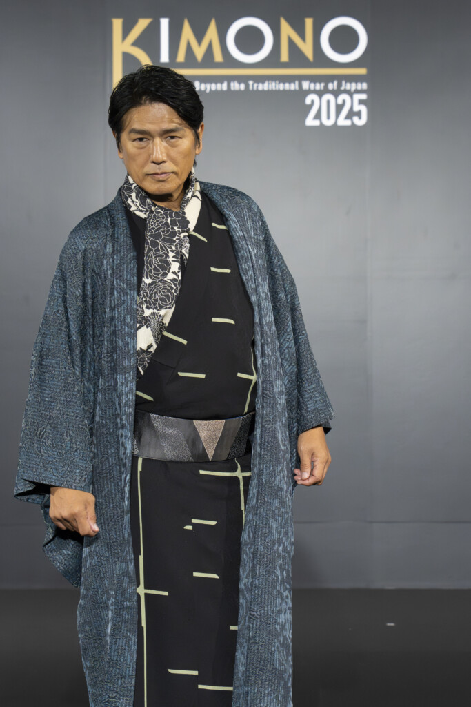 以前から時代劇を通して、着物とお付き合いしてきました。普段は江戸時代の着物が多いので、今回のような『新しい古典』をテーマにした、モダンな着物を着させていただくことは初めてでした。今日はコートのような軽い羽織りもあり、少しとっぽく着たくなりますね。若い頃と違い、この年になってから着物の持つ奥深さや素敵さに気がつきました。普段着ているものよりも軽いので、構えずにこれからも着続けたいですね。