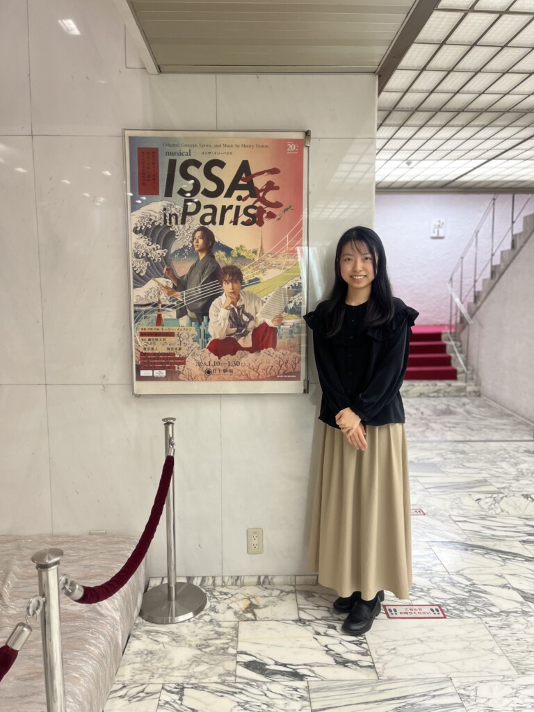 高校生のときに、藤田俊太郎さんが海外の戯曲を演出した作品を観て受けた衝撃が長い間心に残っており、今回の新作ミュージカル『ISSA in Paris』の発表を知ったときからとても楽しみにしていました。物語を通して藤田さんがどんなことを考え、何を大切にしているのかということを感じることができたミュージカルです。
