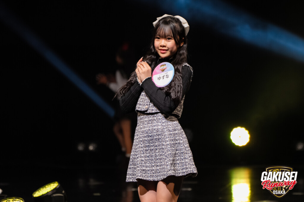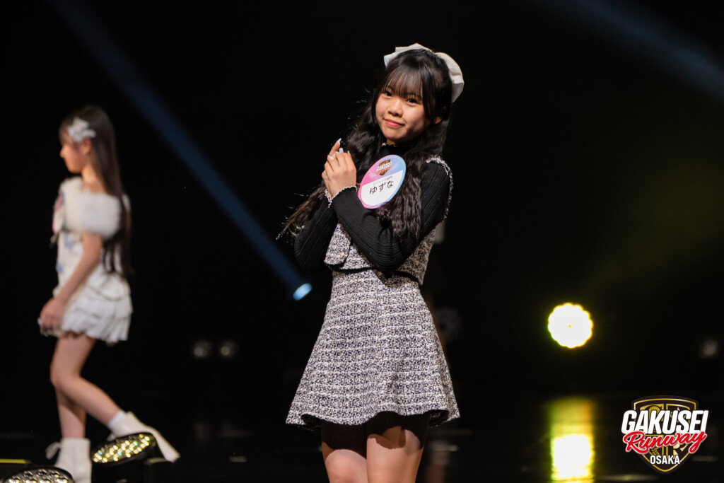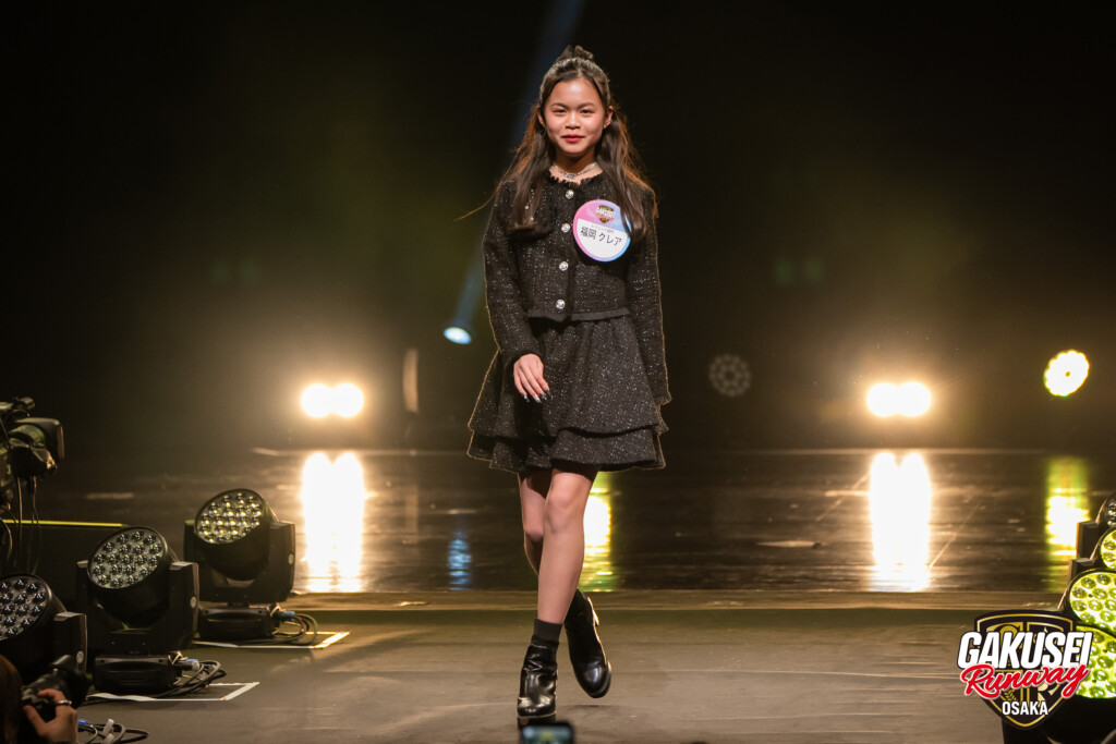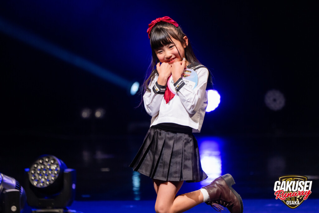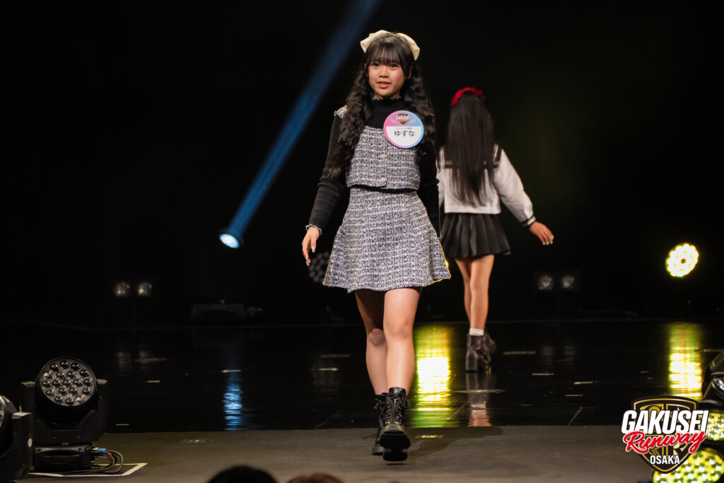 今回ランウェイを歩いて緊張しましたが、手を振ってくださる方や撮影してくださる方がいたので楽しむことができました。ステージからの景色は、最初は光が眩しかったけれど、トップに立った時にたくさんの人の笑顔が見られて嬉しかったです。今回の出場のために、毎日放課後や部活後に靴を履いて部屋で練習しました。