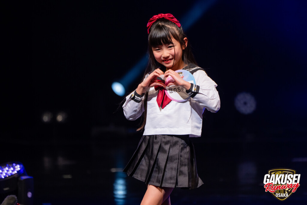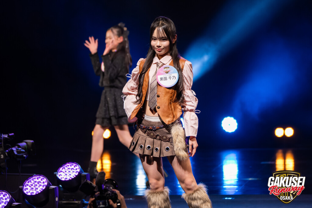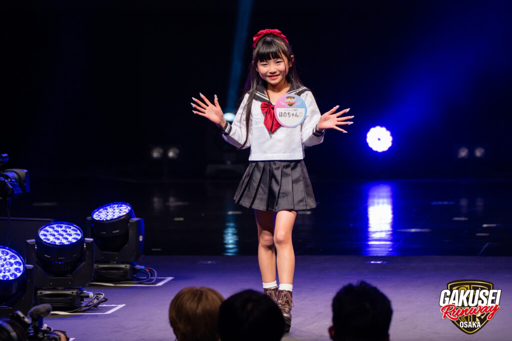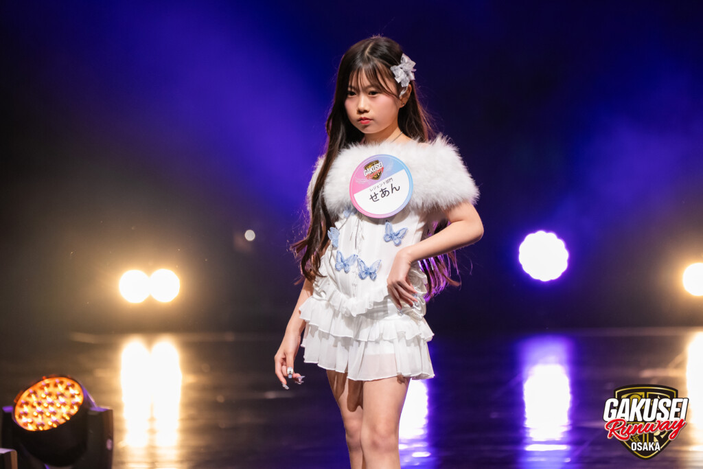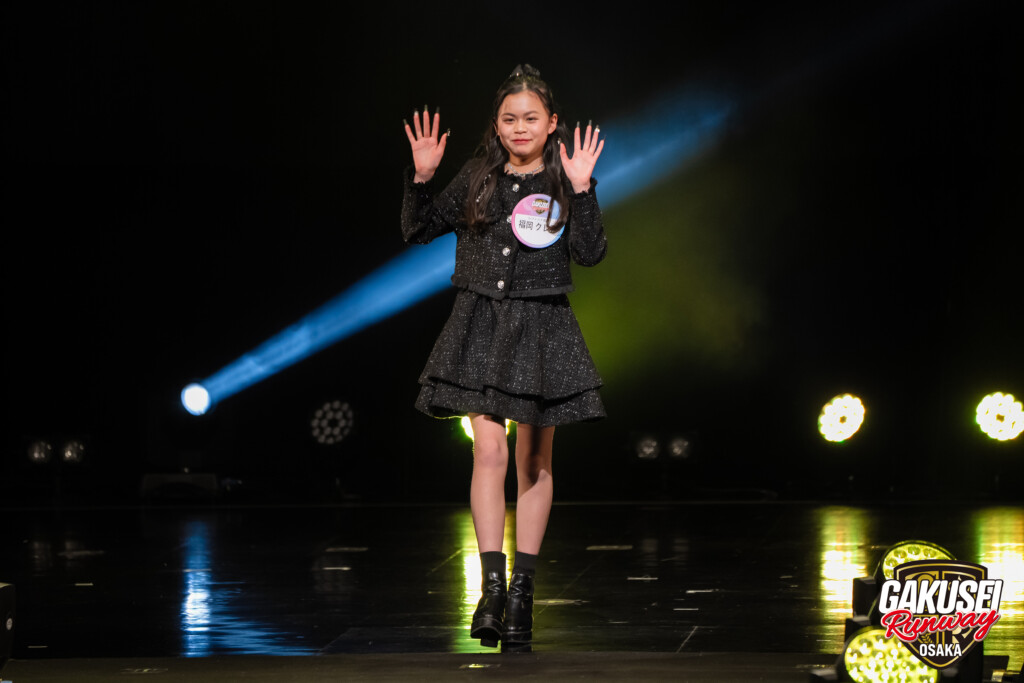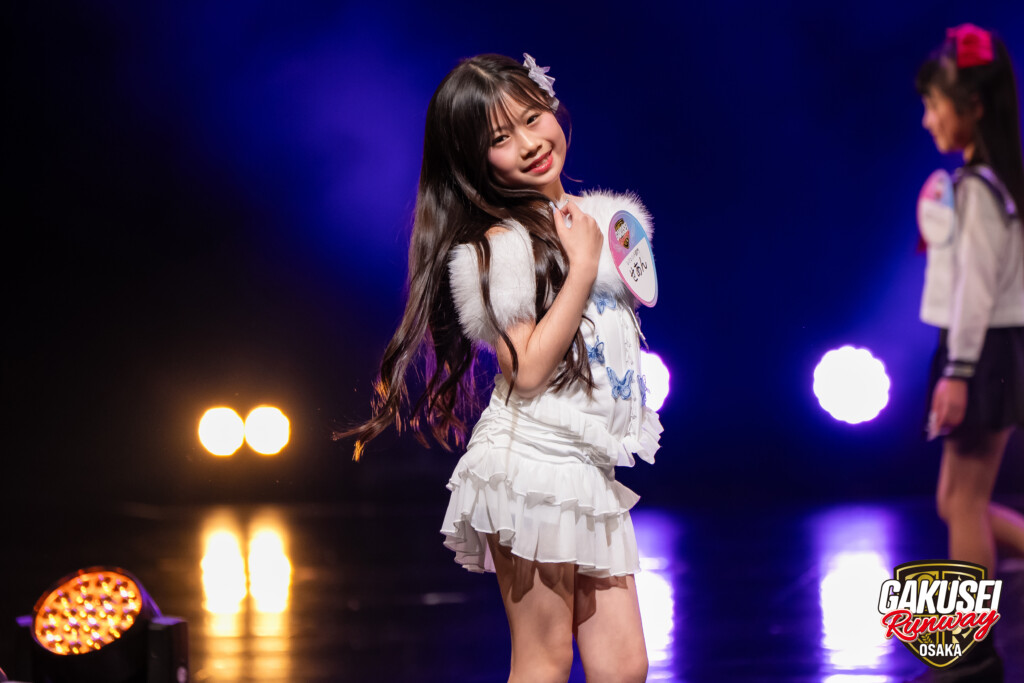 今回ランウェイを歩いて緊張しましたが、手を振ってくださる方や撮影してくださる方がいたので楽しむことができました。ステージからの景色は、最初は光が眩しかったけれど、トップに立った時にたくさんの人の笑顔が見られて嬉しかったです。今回の出場のために、毎日放課後や部活後に靴を履いて部屋で練習しました。