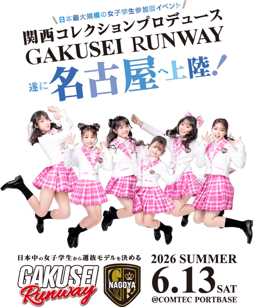 学生ランウェイは、モデル経験の有無を問わず、女子小学生・中学生・高校生・大学生・専門学生が参加できるイベントです。「ランウェイを歩いてみたい」という想いを大切に、オーディションやウォーキングレッスン、宣材写真撮影など、プロのサポートを受けながら本格的なステージに挑戦することができます。さらに、2026年6月には名古屋での初開催も決定しました。大阪で積み重ねてきた実績と熱量をそのままに、名古屋でも女子学生たちの挑戦を後押ししていきます。